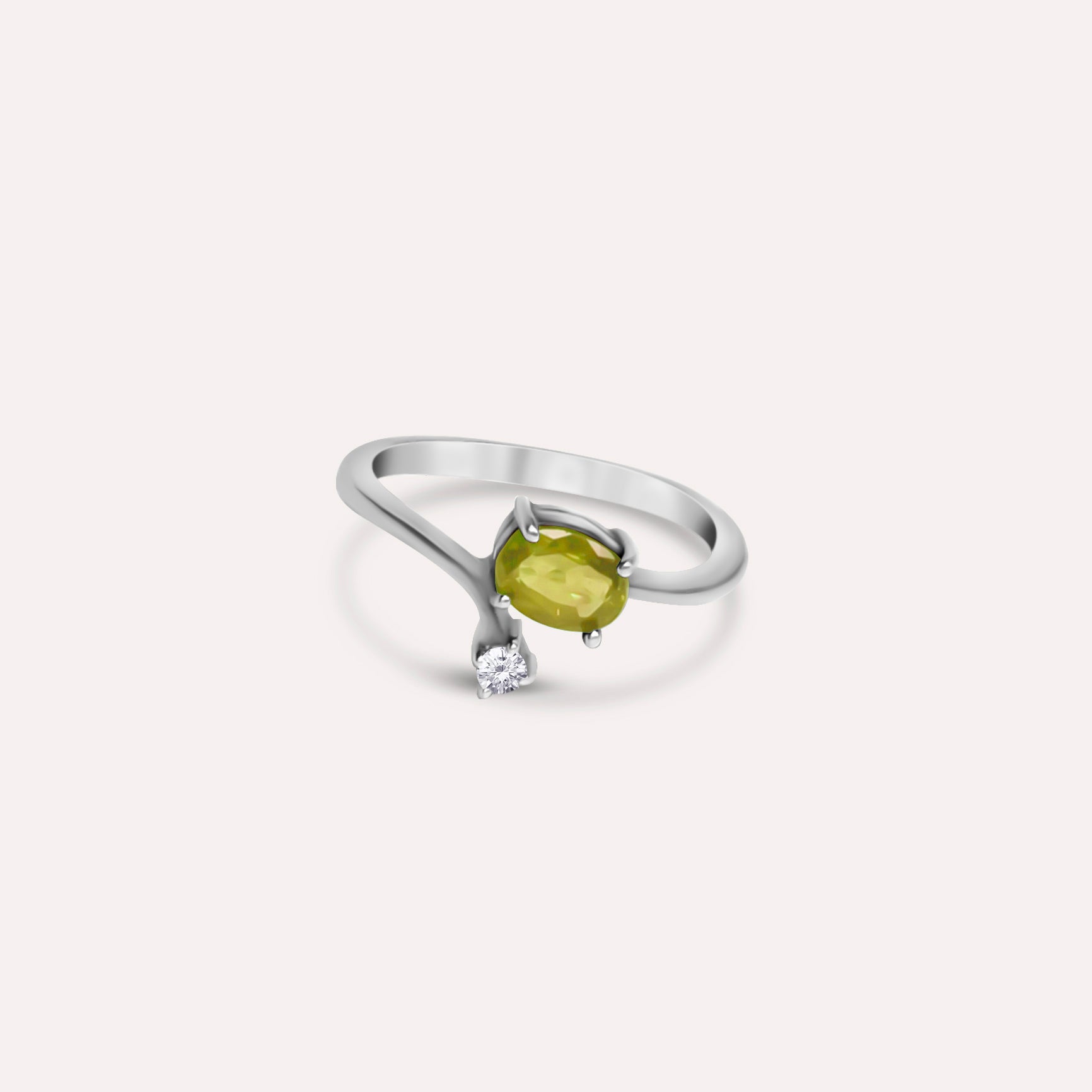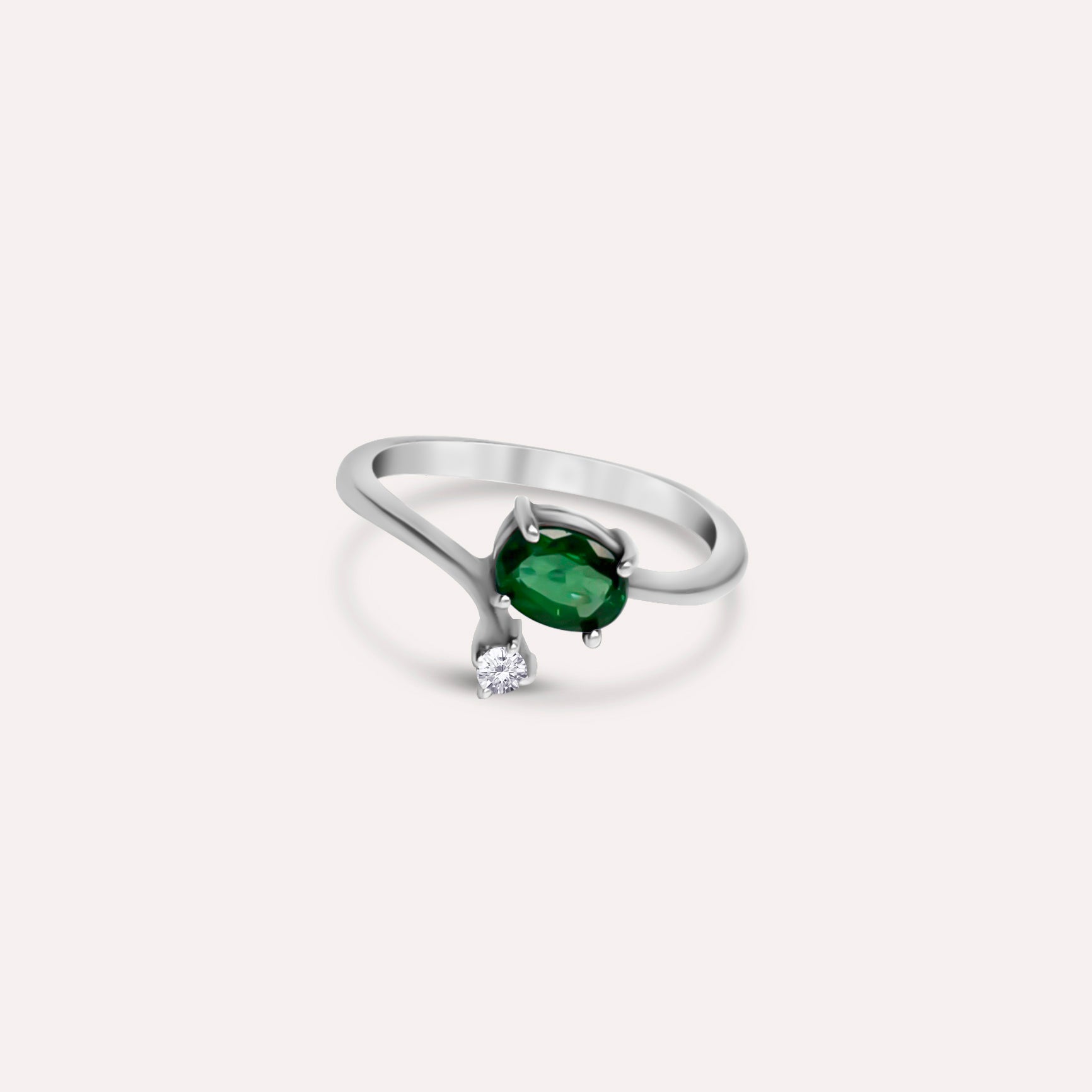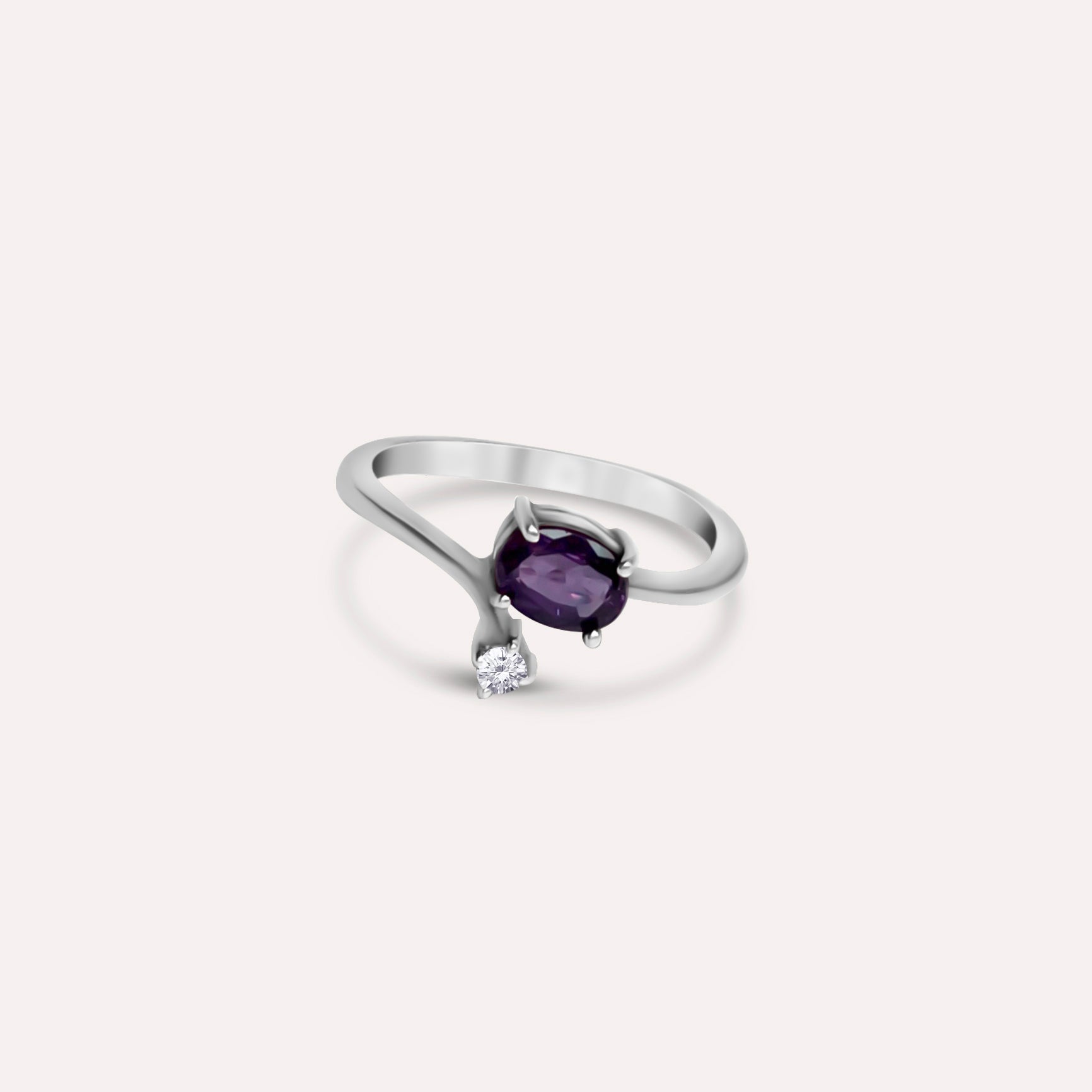 This ring creates a sense of dimension, Using symmetry and a one-side bypass style. A main gemstone of your choice as a focal point, with white topaz inlaid on one side. Its purpose is to inspire thoughts of more self-love, acceptance, and loyalty in its wearer.