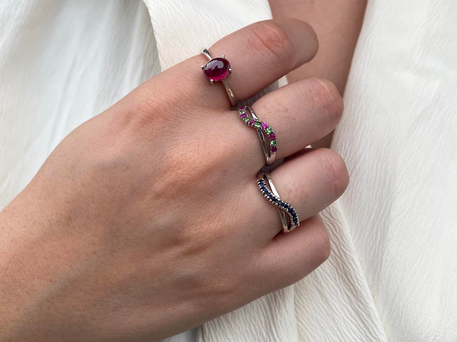 Choose from 3 ethically sourced birthstones to create a one-of-a-kind ring that reflects your story- Blue Sapphire, Ruby, Tsavorite Garnet & Ruby mix.