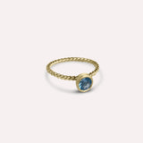 Created to be stacked, this 14K Solid Gold collection is inspired by classic rope designs. Our twisted Alice in Blue Topaz is the new companion to your other rings. Designed to complete the ideal balance between everyday and striking.