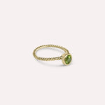Created to be stacked, this 14K Solid Gold collection is inspired by classic rope designs. Our twisted Alice in Peridot is the new companion to your other rings. Designed to complete the ideal balance between everyday and striking.