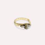 Elegantly crafted in 14K solid gold, this ring is a masterpiece. With two White Sapphires set on both sides of a central genuine Cat’s-eye gemstone. Designed to wear on its own or pair with more gemstone jewels to take your stack to the next level.