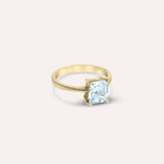 Add a fine touch to your ring stack. Ariel ring is a 14K Solid Gold reverse tapered style finished with a square-cut Aquamarine gemstone in a basket setting. Pair this gorgeous piece with colorful gemstone rings for a restful appearance that lets you shine.