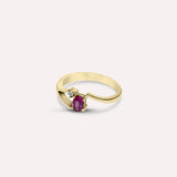 Precious ring with a pop of color, Expertly made with 14K solid gold. A one-sided split ring inlaid with Ruby and White Sapphire. Its gentleness is inspired by flowers blooming. Wear it alone or mix it with gemstone rings, Clover is your next jewel for every occasion.