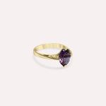 This 14K solid gold design is majestic and royal. Embellished with an Amethyst gemstone that tapers to a central point, the Diana ring is a handcrafted, detailed design that celebrates the beauty of nature. Wear solo or combine with more gemstone rings.