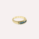Make your ring stack stand out with this solid gold addition. Four round Blue Topaz gemstones are set in a channel setting to highlight their bluish color. It is the ideal colorful addition to your ring stack to bring out your fabulous personality.