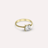Add a chic touch to your jewelry stack. Sissie ring is a 14K Solid Gold reverse tapered style finished with a square-cut White Topaz gemstone in a basket setting. Style this gorgeous piece with colorful gemstone rings.