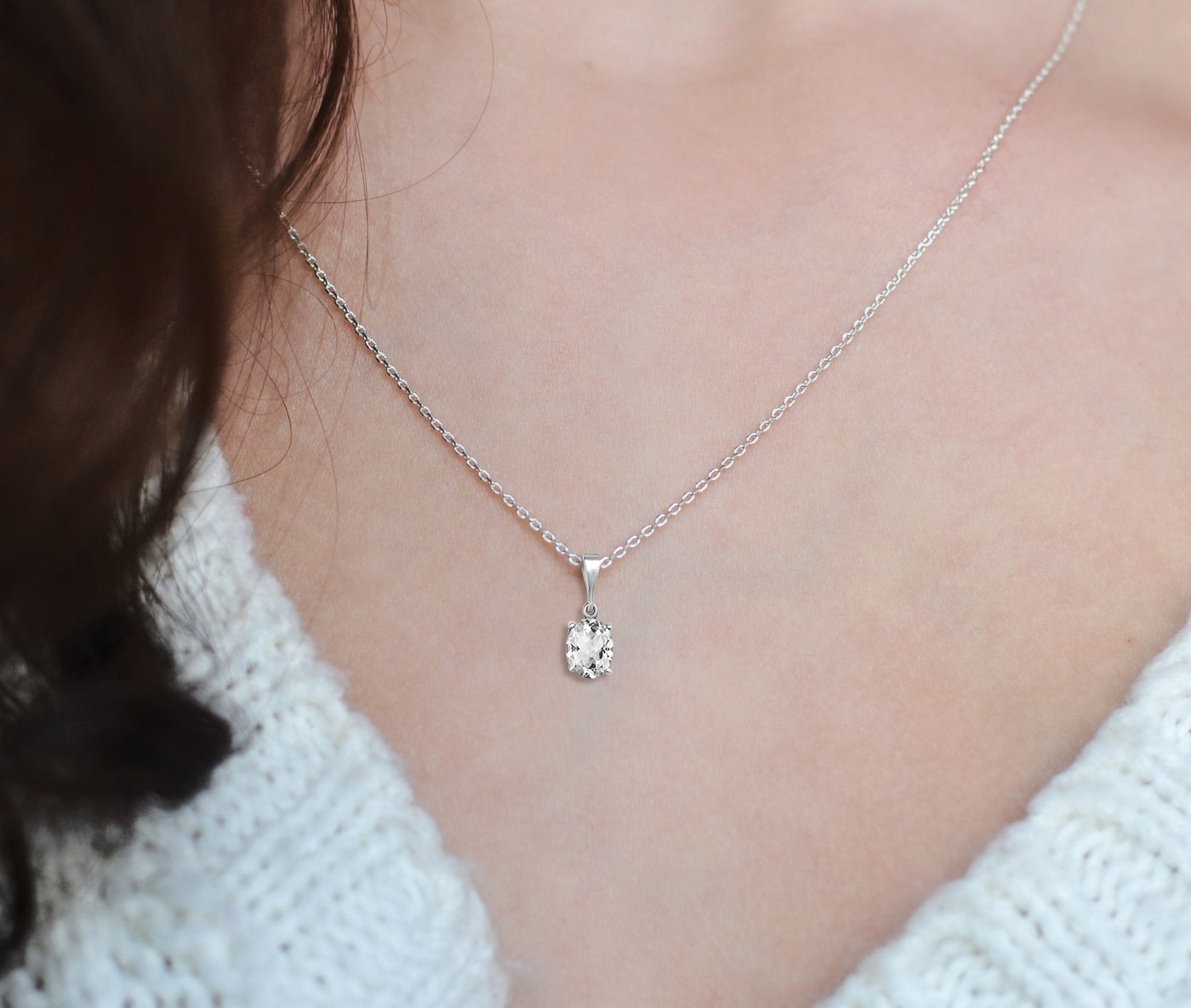 An everyday icon. Classic and bright, a dominant oval White Topaz in a solitaire set as a striking focal point. Pair this gorgeous piece with colorful gemstone jewelry to upgrade any outfit.