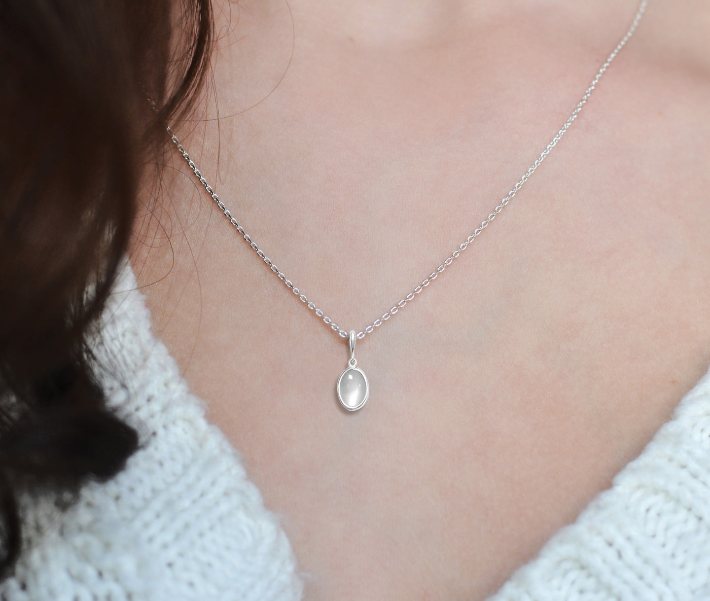Make your dreams a reality with the Mona collection. An oval Moonstone pendant in a cabochon cut makes a distinct focal point, Inspired by the moon glow in the night. Layer this piece with a small choker for that simple yet effective look.