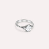 A semi-precious version of our best seller Penelope's design. Bold yet lightweight addition to your ring collection, This design is a 3-stone set inlaid with two small White Topaz on both sides of a central gemstone of your choice—a forever piece to wear solo or paired with a calm design to create contrast.
