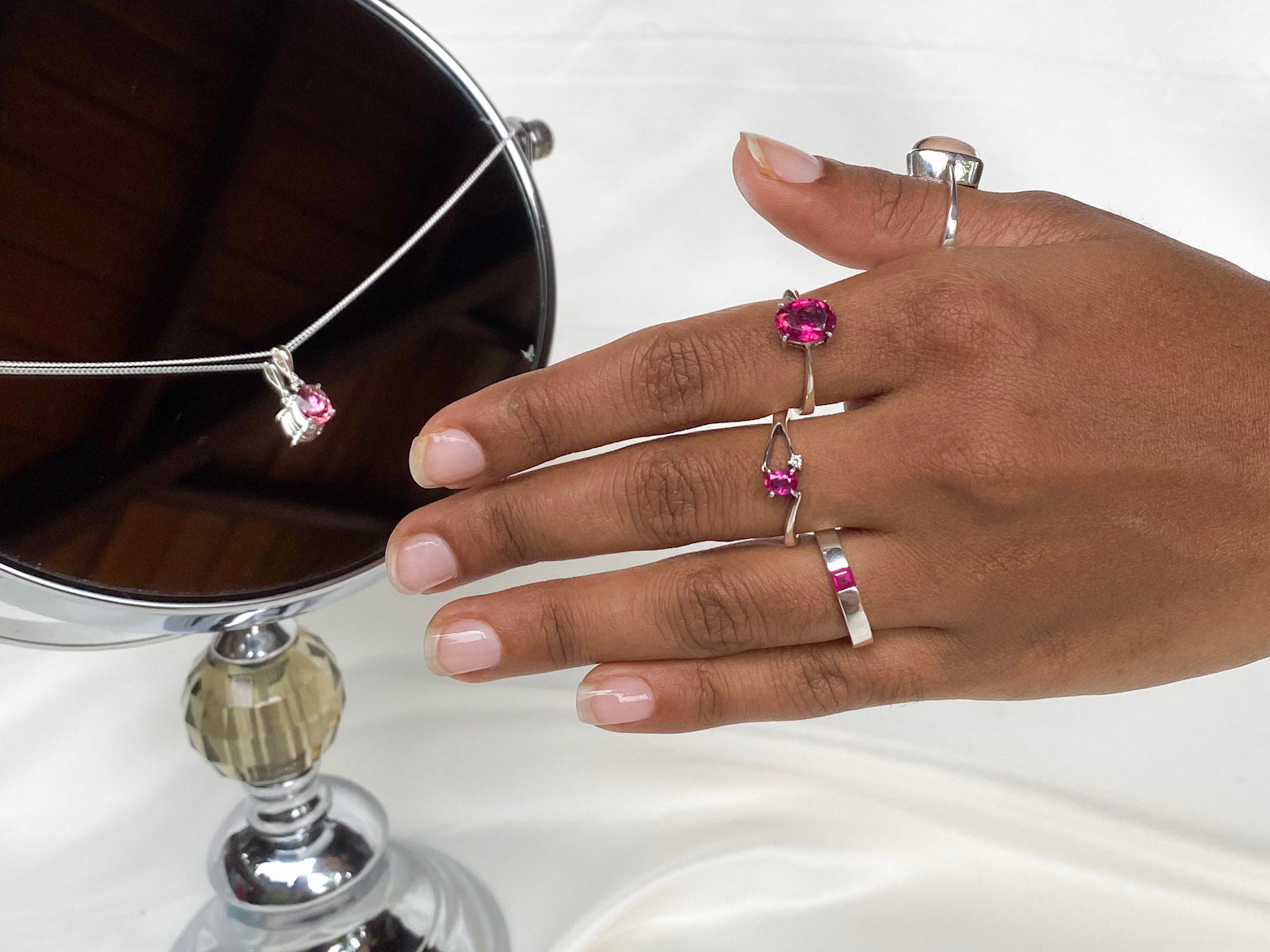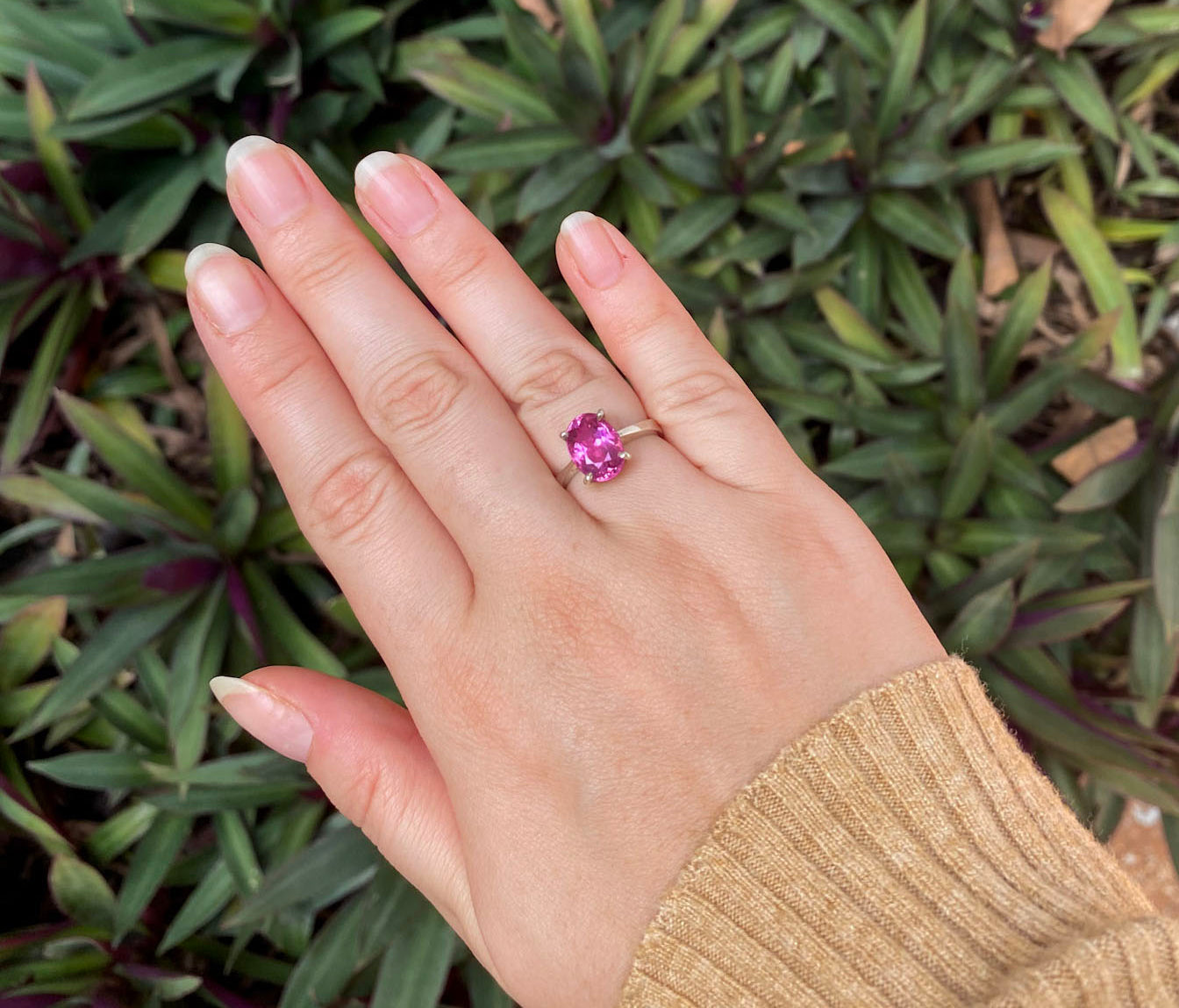 Look on the pink side of life. It is embellished with an outstanding pink-colored Tourmaline gemstone set in a basket set that catches the eye. You deserve to feel proud of yourself, so wear it every day to remind yourself that you are worthy.