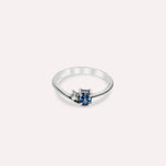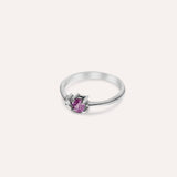 Stylish, a handcrafted ring with a pop of color. This classic ring is adorned with a delicate gemstone of your choice and a brilliant White Sapphire on one side. Whether worn alone or in combination with other colorful rings, this ring will bring out your authentic self.