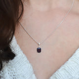 Handcrafted with meticulous attention to detail, Victoria Necklace features a cushion cut square Garnet gemstone in a solitaire setting. Designed to wear alone or paired with gemstone jewels to embrace your true self.